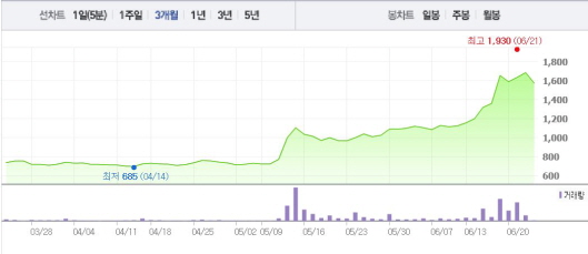이어 키스톤글로벌은 “7월6일 임시주주총회가 개최될 예정”이라며 “전환사채 발행, 타법인 주식취득, 자산매각 등을 검토 중에 있지만 확정된 사항은 없다”고 덧붙였다.주가흐름<사진출처=네이버 캡쳐>