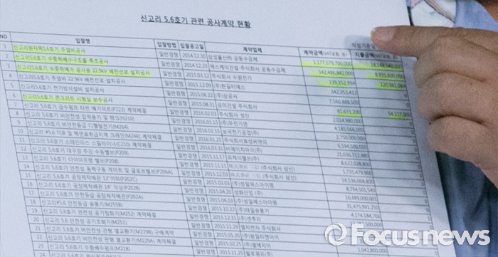 (서울=포커스뉴스) 국회 산업통상자원위원회 소속 우원식 더불어민주당 의원이 23일 오전 서울 여의도 국회 정론관에서 신고리 5, 6호기 건설허가 전 공사가 진행되고 있다는 내용의 자료를 들고 기자회견을 하고 있다.