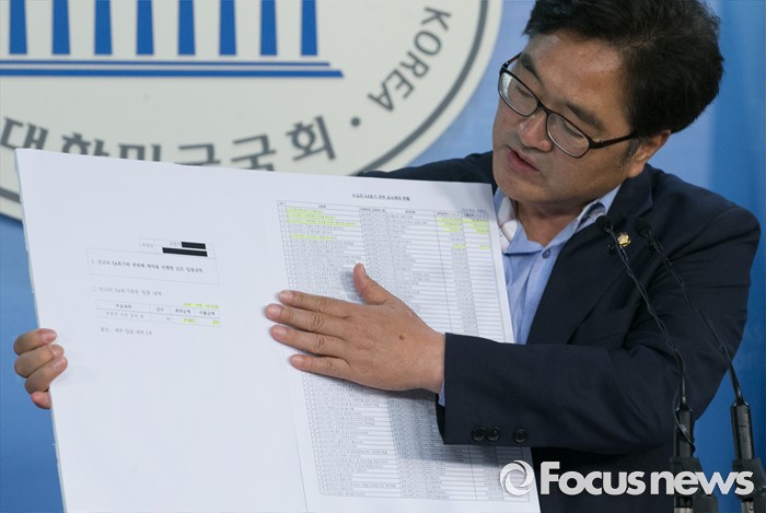 (서울=포커스뉴스) 국회 산업통상자원위원회 소속 우원식 더불어민주당 의원이 23일 오전 서울 여의도 국회 정론관에서 신고리 5, 6호기 건설허가 전 공사가 진행되고 있다는 내용의 자료를 들고 기자회견을 하고 있다.