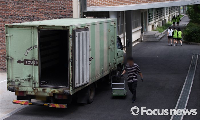 (서울=포커스뉴스) 23일 오전 서울 동작구 한 중학교에서 제빵업체 납품직원이 빵 납품을 마친 후 차량으로 이동하고 있다. 이날부터 학교비정규직노동조합 조합원들이 처우개선 등을 요구하며 총파업에 돌입했으며, 서울시교육청에 따르면 서울지역 학교 110곳(22일 기준)에서 급식 운영에 차질을 빚을 것으로 조사됐다.