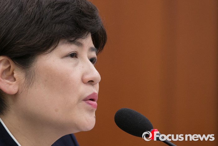 (서울=포커스뉴스) 23일 오전 서울 여의도 국회에서 열린 여성가족위원회 전체회의에 참석한 강은희 여성가족부 장관이 의원들의 질의에 답하고 있다.