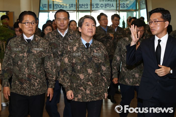 (서울=포커스뉴스) 안철수 국민의당 상임공동대표, 박지원 원내대표 등 의원들이 23일 오전 경기도 평택 해군 제2함대 사령부를 방문해 서해수호관을 둘러보고 있다.