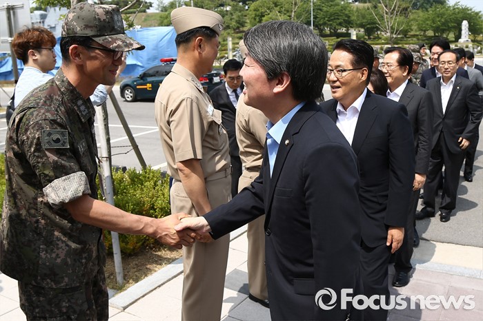 (서울=포커스뉴스) 안철수 국민의당 상임공동대표 등 의원들이 23일 오전 경기도 평택 해군 제2함대 사령부를 방문해 군 관계자들과 인사하고 있다.
