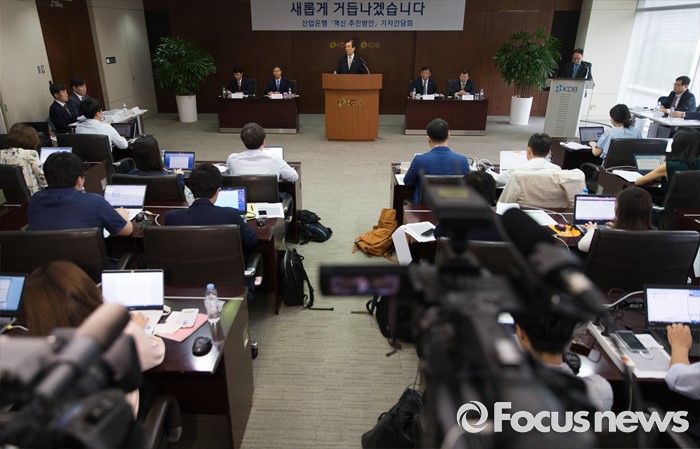 (서울=포커스뉴스) 23일 오후 서울 영등포구 KDB산업은행 본점에서 열린 산업은행 혁신 추진방안 기자간담회에 참석한 이동걸 KDB산업은행 회장이 취재진 질문에 답변하고 있다.