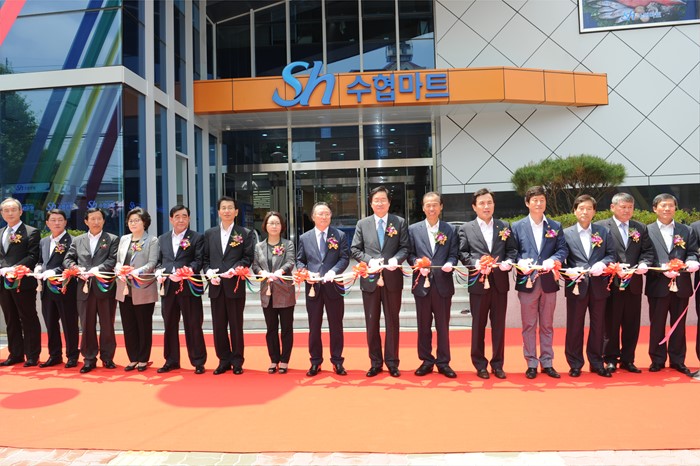 (춘천=포커스뉴스) 김영석 해양수산부장관이 23일 강원도 춘천시 효자동 수산물종합유통센터 준공식에 참석해 내빈들과 테이프커팅식을 하고 있다. <사진제공=해양수산부>