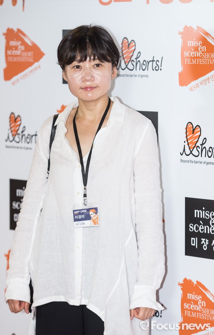 (서울=포커스뉴스) 23일 오후 서울 마포구 롯데시네마 홍대입구점에서 열린 '제15회 미쟝센 단편영화제' 개막 포토월 행사에 참여한 이경미 감독이 포토타임을 갖고 있다.