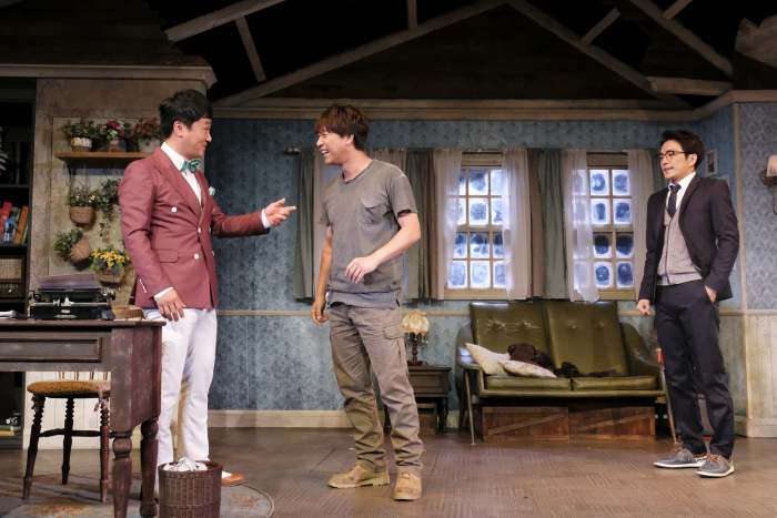 연극 '트루웨스트 리턴즈'는 인터파크 티켓 예매처를 통해 예매할 수 있으며 오는 8월28일까지 대학로 예그린씨어터에서 두 달 여간 공연된다.연극 '트루웨스트' 공연 모습. 왼쪽부터 이승원 오만석 정문성 배우.<사진제공=악어컴퍼니>