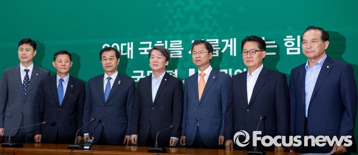 (서울=포커스뉴스) 황인무(왼쪽 세 번째) 국방부 차관이 24일 오전 서울 여의도 국회에서 국민의당 지도부에 북한 미사일 발사 관련 현안보고 하기 전 사진촬영 하고 있다.