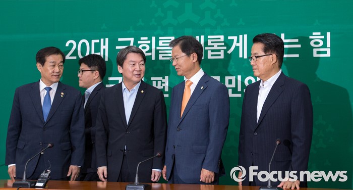 (서울=포커스뉴스) 안철수(오른쪽 세 번째) 국민의당 상임공동대표와 천정배(오른쪽 두 번째) 공동대표가 24일 오전 서울 여의도 국회에서 황인무(왼쪽) 국방부 차관에게 북한 미사일 발사 관련 현안보고 받기 전 대화를 나누고 있다. 사진 오른쪽은 박지원 국민의당 원내대표.