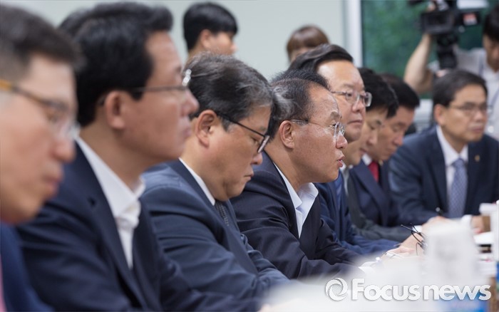 (서울=포커스뉴스) 24일 오후 서울 여의도 국회 의원회관에서 열린 여야 대구지역 의원들과 강호인 국토교통부 장관의 영남권 신공항 백지화 관련 면담에 참석한 윤재옥 새누리당 대구시당 위원장이 발언하고 있다.