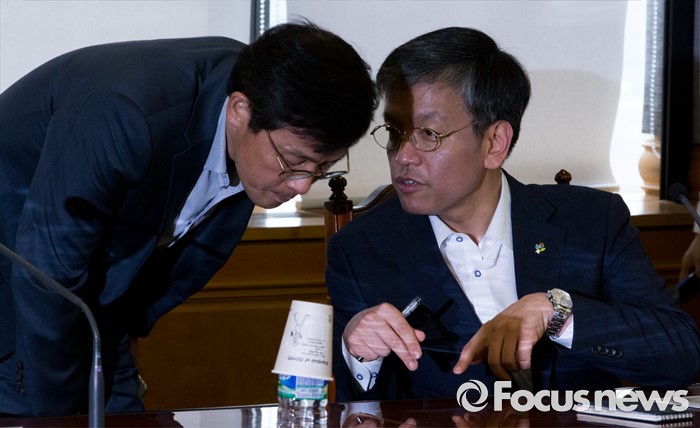 (서울=포커스뉴스) 24일 오후 서울 중구 전국은행연합회에서 최상목(오른쪽) 기획재정부 제1차관이 브렉시트 관련 긴급거시경제금융회의에 참석해 관계자와 이야기를 나누고 있다.