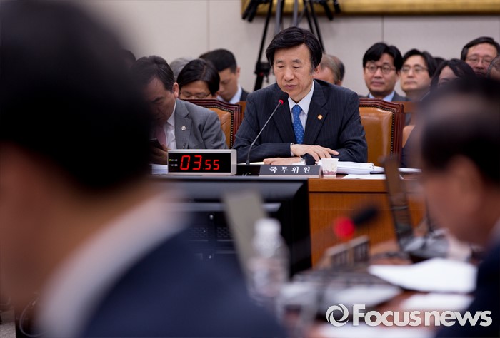 (서울=포커스뉴스) 24일 오전 서울 여의도 국회에서 열린 외교통일위원회 전체회의에 참석한 윤병세 외교부 장관이 의원들의 질의에 답하고 있다.