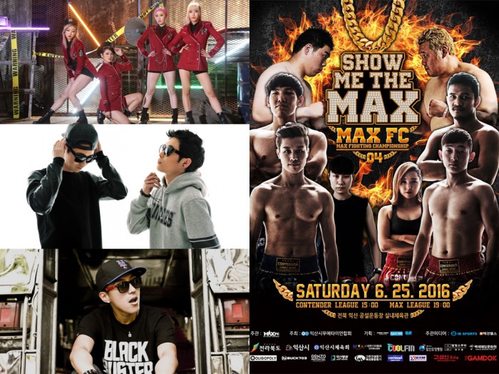 쇼미더맥스 메인이벤트는 베테랑 종합격투가 임준수와 입식격투기 신성 권장원의 헤비급 슈퍼파이트로 결정됐다. 태국의 강자 뎃분종 페어텍스와 ‘꿈꾸는 기전기사’ 박만훈의 코메인 이벤트, 국내 경량급 입식 최강자 김상재와 대회 프랜차이즈 스타 전슬기가 출전하는 MAX FC 초대 남녀 챔피언 타이틀 토너먼트 4강전도 펼쳐진다.걸그룹 솔티, 힙합듀오 온앤온, 래퍼 타래가 오는 25일 전북 익산 실내체육관에서 개최되는 신개념 버라이어티 격투대회 맥스(MAX) FC04 '쇼미더맥스' 대회에서 이색 무대를 선보인다. <사진제공=프로비트컴퍼니>