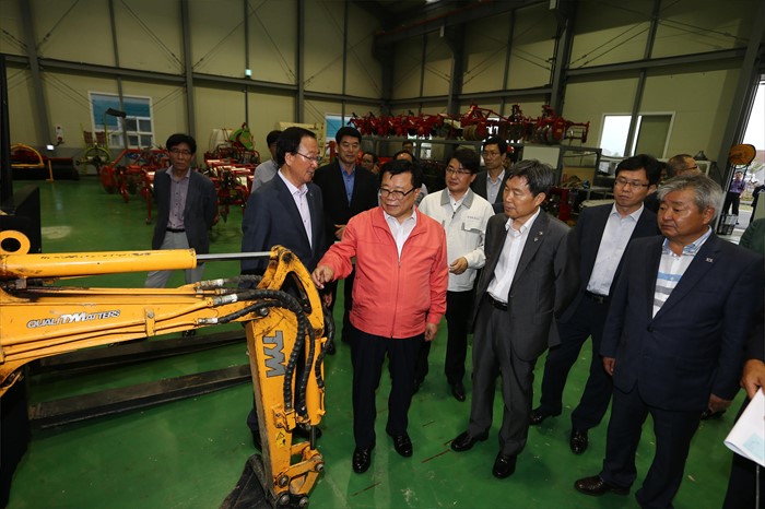 (고성=포커스뉴스) 이동필 농림축산식품부 장관이 24일 경남 고성군 농업기술센터에서 재정부 법제처장 등이 참석한 가운데 규제개혁 현장포럼이 열렸다. 이 장관이 포럼에 앞서 고성군 농업기술센터 시설을 둘러보고 있다. <사진제공=농림축산식품부>