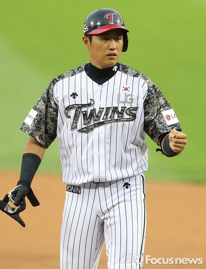 (서울=포커스뉴스) 24일 서울 잠실구장에서 열린 2016 프로야구 넥센-LG 경기 3회말 2사 1,3루에서 LG 채은성이 1타점 우전 안타를 치고 1루에서 주루코치를 바라보고 있다.
