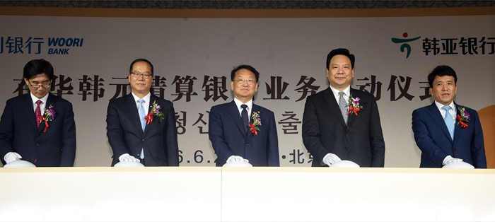 (서울=포커스뉴스) 제1차 아시아인프라개발은행(AIIB) 연차총회 참석차 중국 북경을 방문중인 유일호 부총리 겸 기획재정부 장관이 24일 웨스틴호텔에서 열린 '원/위안화 직거래 관련 청산은행 개소식'에 참석,