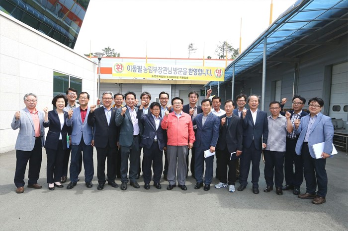(청도=포컷뉴스) 이동필 농림축산식픔부 장관이 25일 경북 청도군 감 클러스터 사업단 현장을 찾아 운영현황을 점검한 뒤 기념촬영을 하고 있다. <사진제공=농림축산식품부>
