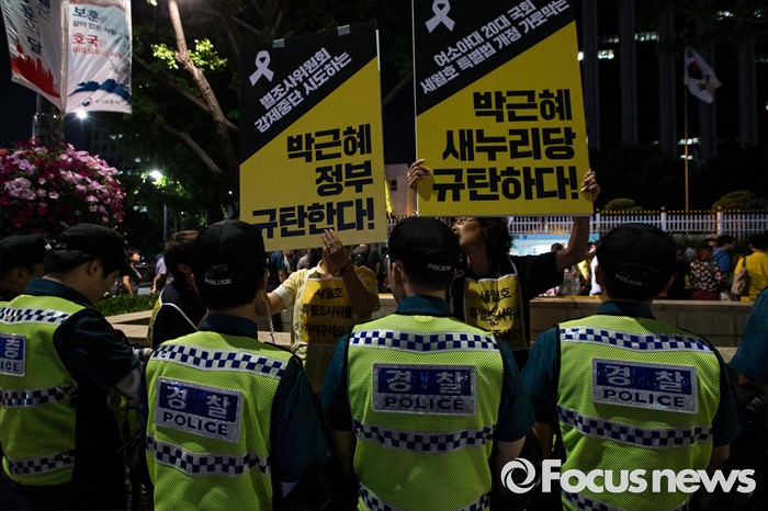(서울=포커스뉴스) 25일 오후 서울 종로구 서울정부청사 앞에서 세월호 가족협의회 및 시민들이 세월호 특별법 개정과 온전한 인양을 촉구하며 농성을 벌이고 있다.