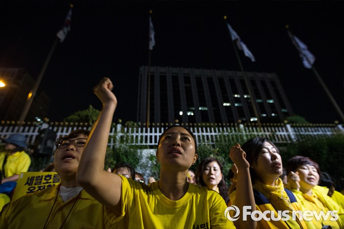 (서울=포커스뉴스) 25일 오후 서울 종로구 서울정부청사 앞에서 세월호 가족협의회 및 시민들이 세월호 특별법 개정과 온전한 인양을 촉구하며 농성을 벌이고 있다.