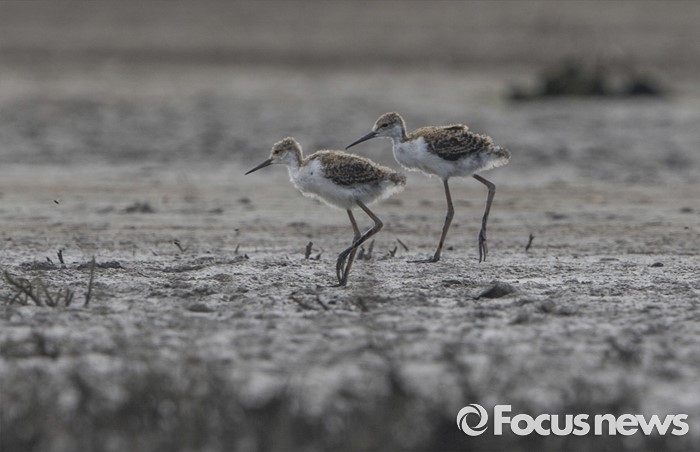 (인천=포커스뉴스) 부화한 지 약 보름된 장다리물떼새 새끼들이 26일 오전 메말라가는 영종도 매립지 습지에서 먹이가 있는 물가를 찾고 있다.