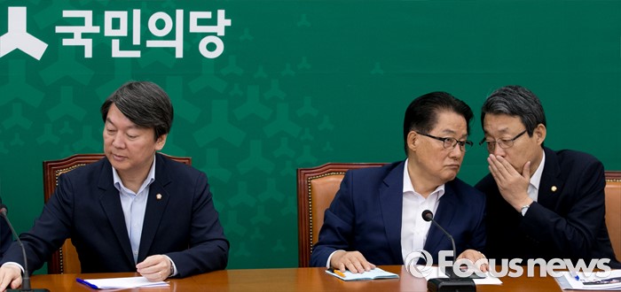 (서울=포커스뉴스) 27일 오전 서울 여의도 국회에서 열린 국민의당 최고위원회의에 참석한 박지원(가운데) 원내대표, 김성식(오른쪽) 정책위의장이 대화하고 있다. 왼쪽은 안철수 상임공동대표.