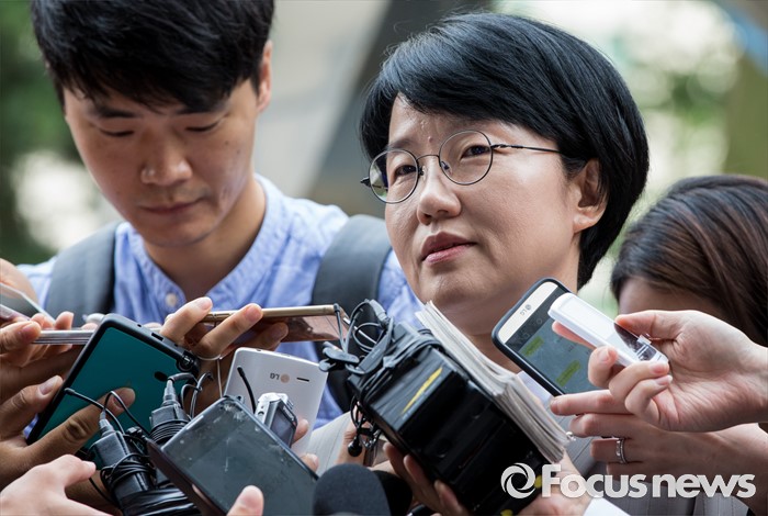 | △ 취재진 질문 답하는 박선숙 |