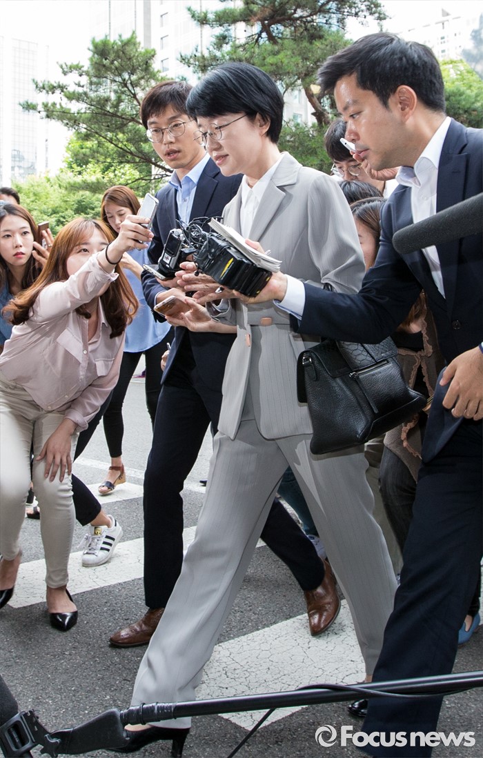 (서울=포커스뉴스) 20대 총선 홍보물 리베이트 수수 과정에 관여한 혐의를 받고 있는 박선숙 국민의당 의원이 27일 오전 서울서부지방검찰청에 조사를 받기 위해 출석하고 있다.