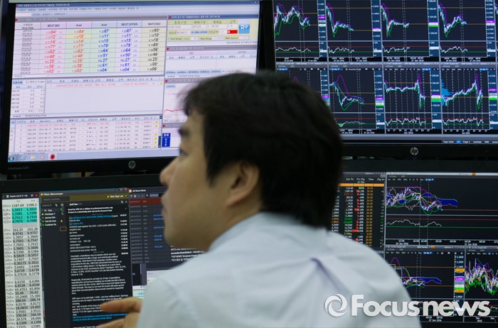 (서울=포커스뉴스) 브렉시트(영국 EU 탈퇴) 충격이 지속되고 있는 27일 오전 서울 중구 명동 KEB 하나은행 딜링룸에서 딜러들이 업무를 보고 있다.코스피는 전 거래일보다 23.39(1.21%) 포인트 하락한 1901.85로, 코스닥은 전 거래일보다 17.95(2.77%) 포인트 하락한 629.21에 시작했다. 원달러 환율은 5.6원 내린 1,174.3원으로 개장했다.