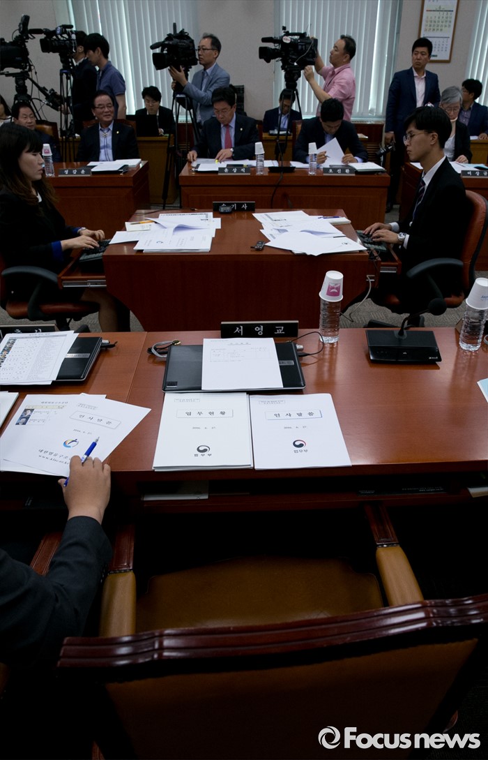 (서울=포커스뉴스) 27일 오전 서울 여의도 국회에서 열린 법제사법위원회 전체회의에 법사위원직을 사퇴한 서영교 더불어민주당 의원의 빈 자리가 보이고 있다.