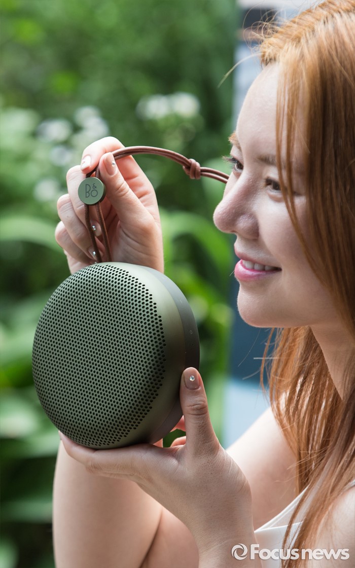 (서울=포커스뉴스) 28일 오전 서울 종로구의 한 카페에서 열린 뱅앤올룹슨의 블루투스 스피커 '베오플레이 A1(Beoplay A1)' 출시 포토세션행사에 한 모델이 신제품을 선보이고 있다.