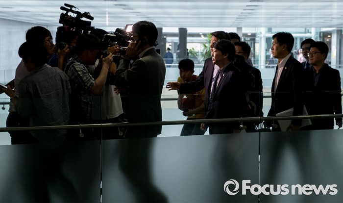 (서울=포커스뉴스) 28일 오전 서울 여의도 국회 의원회관에서 왕주현 전 사무부총장 구속 등 리베이트 수수 의혹 관련 비공개 국민의당 의원총회를 마친 안철수 상임공동대표가 취재진 질문을 받으며 이동하고 있다.