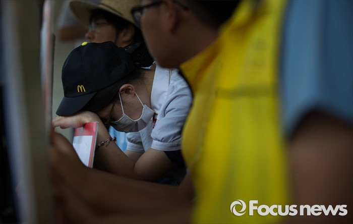 (서울=포커스뉴스) 28일 오전 서울 마포구 한국경영자총연합회 회관 앞에서 알바노조 조합원들이 10년 연속 최저임금 동결을 주장하는 경총에 항의방문 하자 경찰이 막고 있다.