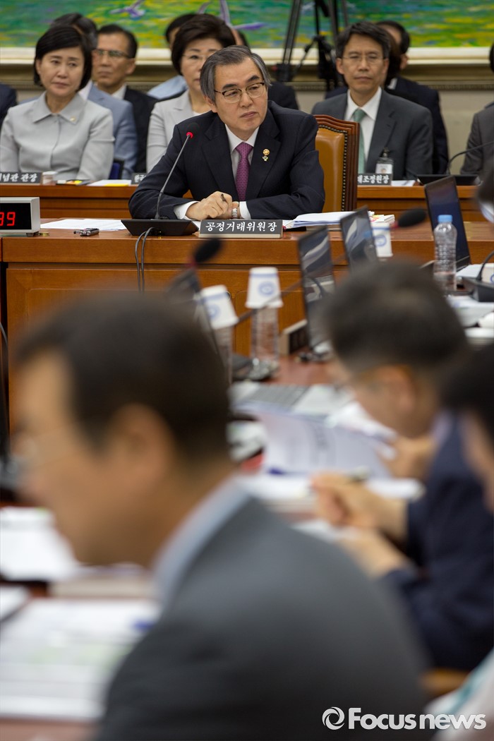 (서울=포커스뉴스) 정재찬 공정거래위원회 위원장이 28일 오후 서울 여의도 국회에서 열린 정무위원회에 참석해 질의응답 하고 있다.