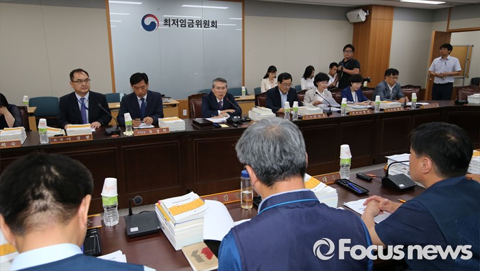 (세종=포커스뉴스) 박준성 최저임금위원회 위원장이 28일 오후 세종시 정부세종청사 고용노동부 최저임금위원회 전원히의실에서 열린 최저임금위원회 제7차 전원회의를 주재하고 있다.
