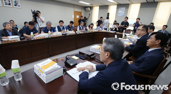(세종=포커스뉴스) 박준성 최저임금위원회 위원장이 28일 오후 세종시 정부세종청사 고용노동부 최저임금위원회 전원히의실에서 열린 최저임금위원회 제7차 전원회의에서 이동웅 사용자 위원의 발연을 듣고 있다.