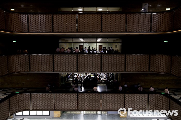 (서울=포커스뉴스) 28일 오후 서울 여의도 국회에서 상임위원회에 업무 지원을 나선 관계기관 공무원들이 전체회의가 열리는 회의실 밖을 지키며 업무를 보고 있다.