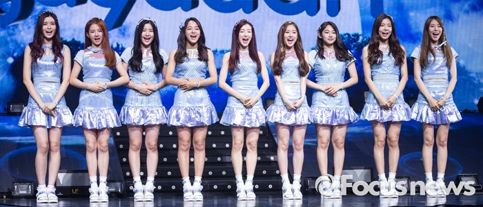 (서울=포커스뉴스) 28일 오후 서울 광진구 예스24 라이브홀에서 열린 걸그룹 구구단의 데뷔 쇼케이스에 참여한 멤버들이 취재진을 향해 인사를 하고 있다.