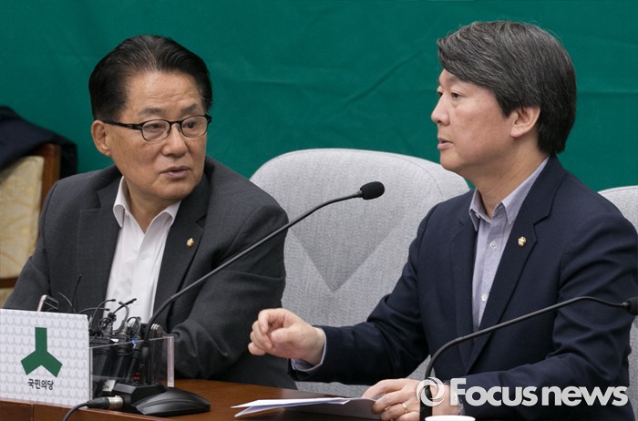 (서울=포커스뉴스) 28일 오후 서울 여의도 국회에서 리베이트 의혹에 연루된 박선숙, 김수민 의원과 왕주현 전 사무부총장 징계수위 등 논의를 위한 국민의당 의원총회를 마친 안철수(오른쪽) 상임공동대표와 박지원 원내대표가 대화하고 있다.