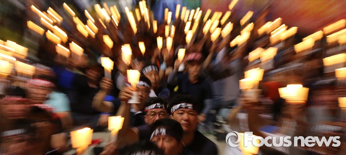 (세종=포커스뉴스) NH 농협중앙회노동조합원들이 28일 오후 세종시 정부세종청사 농림축산식품부 앞에서 농협법 개정 반대하는 1박 2일 노숙집회에서 촛불을 들고 있다.