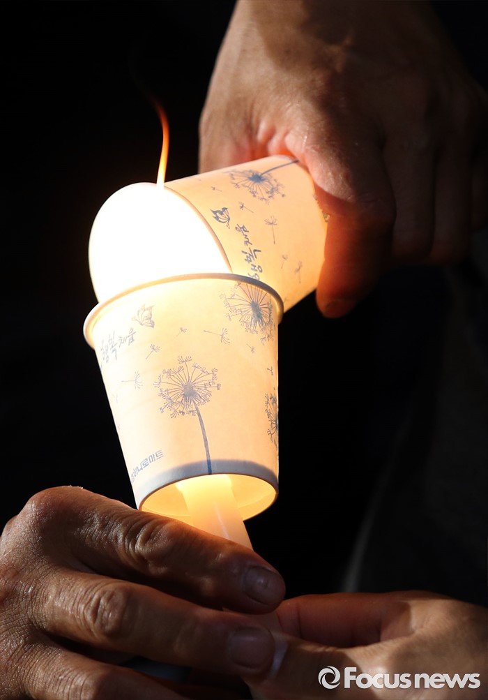 (세종=포커스뉴스) NH 농협중앙회노동조합원들이 28일 오후 세종시 정부세종청사 농림축산식품부 앞에서 농협법 개정 반대하는 1박 2일 노숙집회에서 촛불을 켜고 있다.