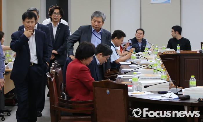 (세종=포커스뉴스) 최저임금 결정 법정 시한인 28일 저녁 세종시 정부세종청사 고용노동부 최저임금위원회 전원회의실에서 열린 전원회의 에서 사용자 위원들이 회의에 참석하고 있다.