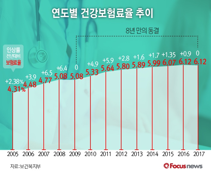 (서울=포커스뉴스) 보건복지부는 28일 제10차 건강보험정책심의위원회를 열고 2017년 건강보험료율을 올해와 같은 6.12%로 동결 하기로 했다.
