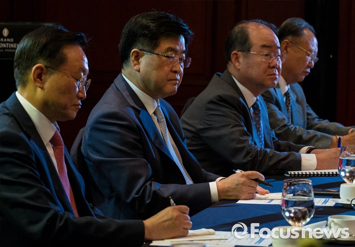 (서울=포커스뉴스) 29일 오전 서울 강남구 그랜드 인터콘티넨탈 호텔에서 열린 산업부 주최 조선업계 CEO ·전문가 간담회에 참석한 박대영(왼쪽부터) 삼성중공업 사장, 권오갑 현대중공업 사장, 정성립 대우조선해양 사장이 굳은 표정을 짓고 있다.