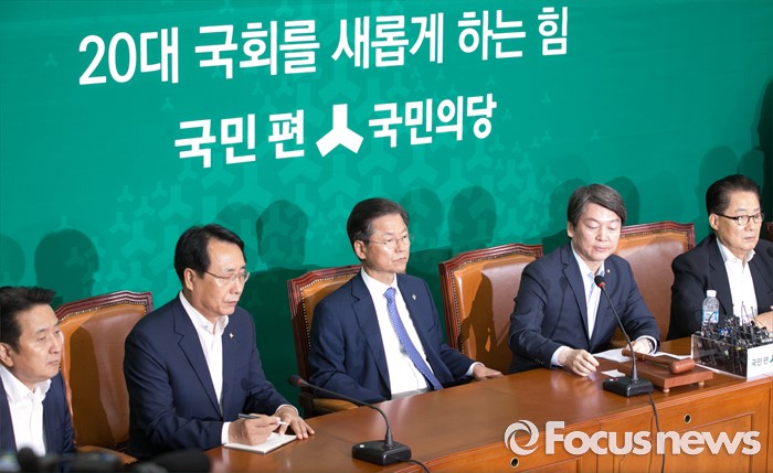 (서울=포커스뉴스) 29일 오전 서울 여의도 국회에서 열린 국민의당 최고위원회의에 참석한 안철수(오른쪽 두번째) 상임공동대표가 리베이트 수수 의혹 사건과 관련 발언하고 있다. 안 대표는 "입장이 정리되면 말씀드리겠다"고 전했다.