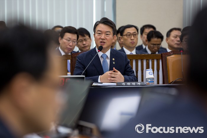 (서울=포커스뉴스) 강신명 경찰청장이 29일 오전 서울 여의도 국회에서 열린 '안전행정위원회 전체회의'에 참석해 더불어민주당 위원들에게 살수차 공개 요구에 대한 입장 설명을 하고 있다.