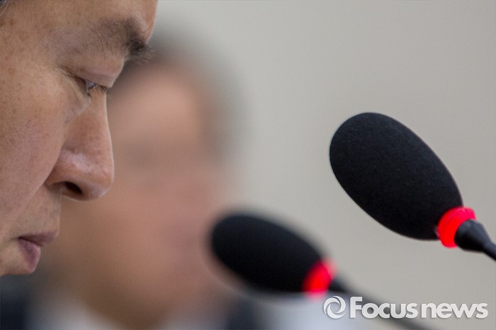 (서울=포커스뉴스) 강신명 경찰청장이 29일 오전 서울 여의도 국회에서 열린 '안전행정위원회 전체회의'에 참석해 더불어민주당 위원들에게 살수차 공개 요구를 받고 있다.