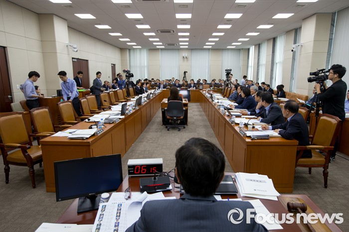 (서울=포커스뉴스) 29일 오전 서울 여의도 국회에서 열린 '안전행정위원회 전체회의'에서 더불어민주당 위원들이 강신명 경찰청장에게 살수차 공개를 요구, 질의응답을 거부한 채 퇴장해 회의가 난항을 겪고 있다.
