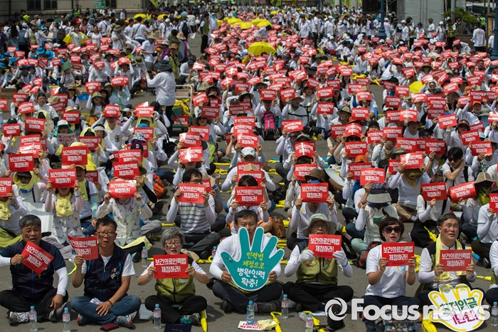 (서울=포커스뉴스) 29일 오후 서울 용산구 서울역 앞에서 보건의료노조의 총력투쟁 결의대회 집회가 열리고 있다.