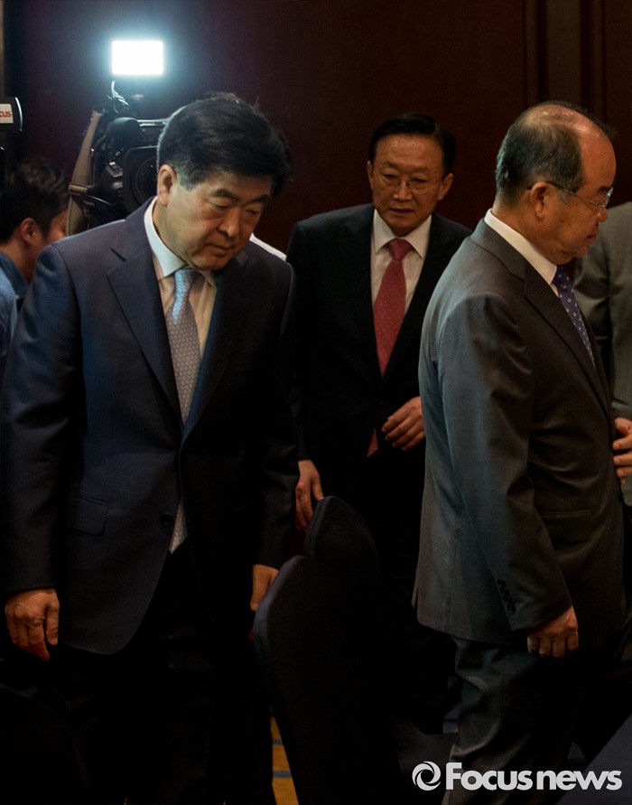 한편 이날 간담회에서 주형환 장관과 조선3사 사장은 조선업계 구조조정은 시장원리에 따라 원칙에 맞게 추진하되 건조능력의 적정화, 주력선종으로의 차별화‧전문화가 필요하다는데 의견을 모았다.(서울=포커스뉴스) 29일 오전 서울 강남구 그랜드 인터콘티넨탈 호텔에서 열린 산업부 주최 조선업계 CEO ·전문가 간담회에 참석한 권오갑(왼쪽부터) 현대중공업 사장, 박대영 삼성중공업 사장, 정성립 대우조선해양 사장이 기념촬영 후 착석하고 있다. 2016.06.29 양지웅 기자 (서울=포커스뉴스) 29일 오전 서울 강남구 그랜드 인터콘티넨탈 호텔에서 열린 산업부 주최 조선업계 CEO ·전문가 간담회에 참석한 주형환 산업통상자원부 장관이 발언하고 있다. 2016.06.29 양지웅 기자