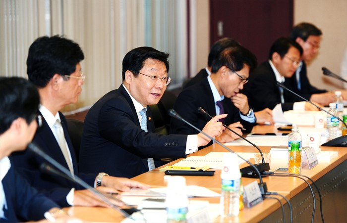 (서울=포커스뉴스) 주형환 산업통상자원부 장관이 29일 서울 강남구 삼성동 코엑스에서 열린 소비재 수출기업 CEO 간담회에서 인사말을 하고 있다. 이날 간담회에는 최수규 중소기업청 차장, 김재홍 KOTRA 사장, 김정관 무역협회 부회장, 김형호 대중소기업협력재단 사무총장, 유충식 농수산식품유통공사 이사, 이용승 중소기업진흥공단 이사, 이대희 쿠첸 대표, 강태선 블랙야크 호장, 유근직 잇츠스킨 대표, 이종욱 대웅제약 부회장, 이상신 오케이에프 회장,최삼규 한국인삼공사 이사, 이갑수 이마트 대표, 윤문현 길림양행 대표, 안제현 삼화네트웍스 대표, 최태웅 경성오토비스 대표가 참석했다. <사진제공=산업통상자원부>
